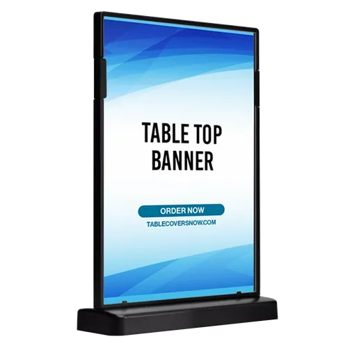 Want to add a matching addition to your table covers? Check out this Plastic Desk Display Accessories.