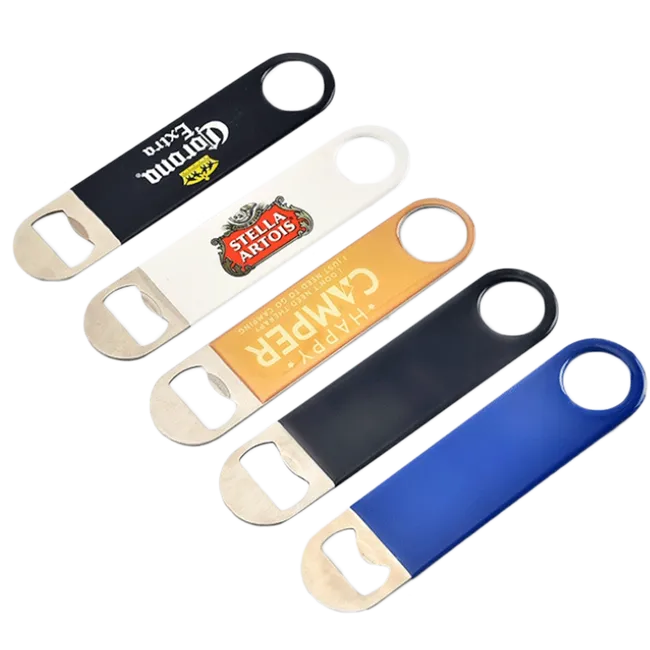 Made of a superior silver-colored alloy and vinyl combination, this Bottle Opener Keychain is handy, sturdy, and anti-rust, and it can handle thousands of bottle tops. Multifunctional for liquor and soda bottles, and can be utilized for both personal and business purposes. Its unique and lightweight design makes it an ideal gift for any occasion! Plus, the printed logo, which can be customized, is a terrific way of marketing your brand!