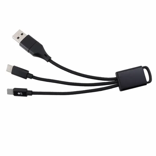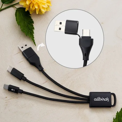 The perfect companion for any stylish tech enthusiast. It is laser engraved for a subtle refined style. The cable includes USB, Type-C, MicroUSB/Non-MFi 5-pin combo tip to cover most Android and other devices. Plus, the USB tip is an adapter/cap that can be easily removed to reveal another Type-C output.