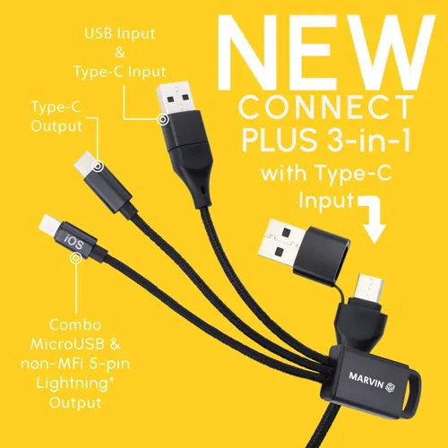Connect Plus 3-in-1 Charging Cable with Type-C Inputs