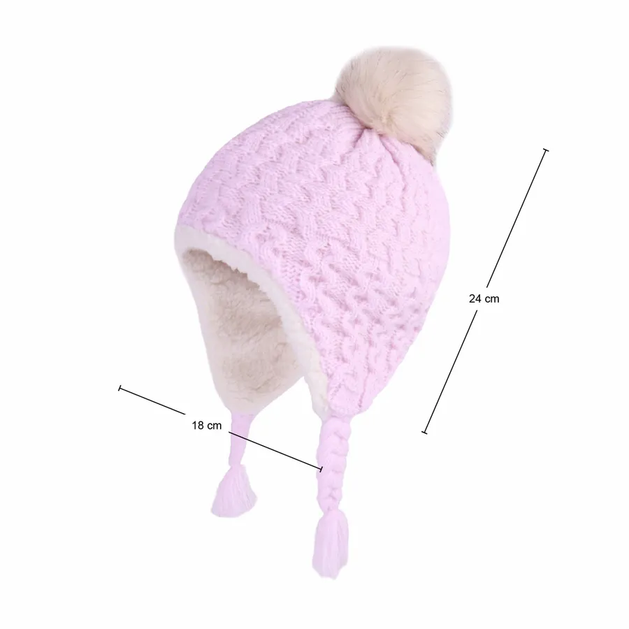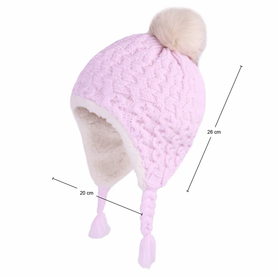Cutesy Pom Acrylic Kid Beanies with Earflaps