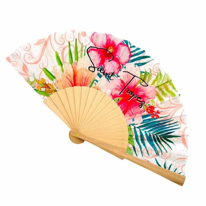 A Super Easy Folding Hand Fan is a single-sided printed fan made from 210D polyester fiber with wood or plastic materials, designed with a smooth folding mechanism that opens and closes like an accordion. Measuring 9" × 16.5", this fan combines practicality with style, offering a lightweight and portable way to stay cool.