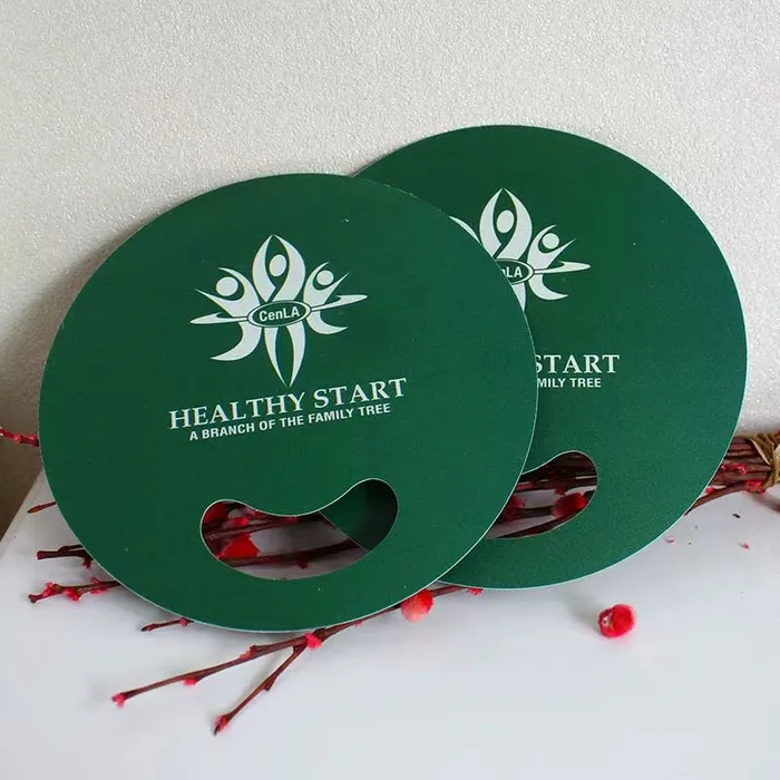 A custom shaped hand fan is a handheld fan that is designed with a specific, non-standard shape. Unlike traditional hand fans that typically have a rectangular or circular shape, a custom shaped hand fan can be crafted into a unique form to suit a particular theme, logo, or design concept. These fans are often used for promotional purposes, events, or as decorative items.