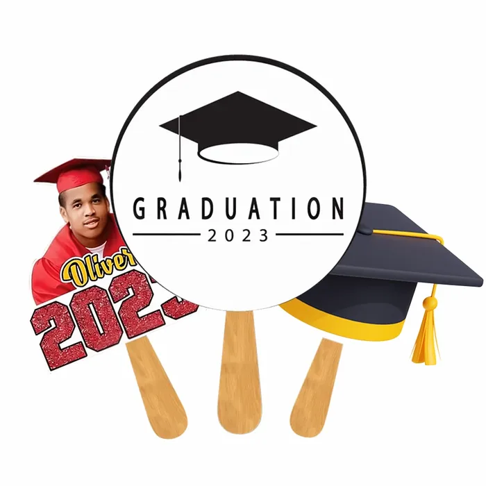 A custom graduation hand fan is a hand fan designed specifically for graduation ceremonies and celebrations. These fans are often used to commemorate the achievement of graduating students and are customized to include relevant details, such as the graduate's name, graduation year, and possibly a school or university logo.