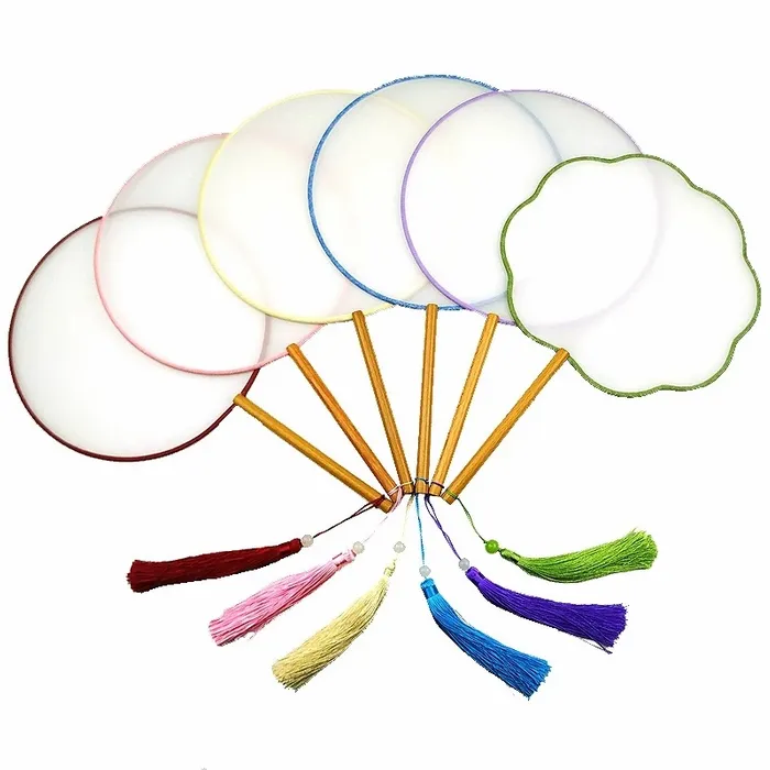 A custom silk hand fan is a beautifully crafted fan made from imitation silk with bamboo and wood handles, offering both durability and elegance. Available in three shapes—Round (8"), Petal (8"), and Haitang (8.5")—each fan is designed with a smooth, silky touch that blends modern simplicity with classical charm.