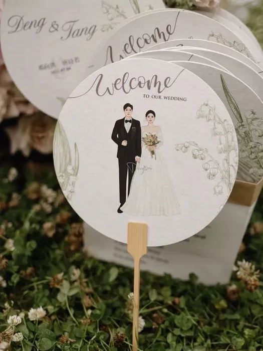 Lightweight and eco-friendly, these paper fans are not only a practical way to keep cool but also a charming accessory for weddings, events, and celebrations. Their elegant look makes them a beautiful decorative piece, while their foldable design with a storage bag adds convenience for guests. Custom wedding hand fans are both a functional keepsake and a stylish detail that elevates any occasion.