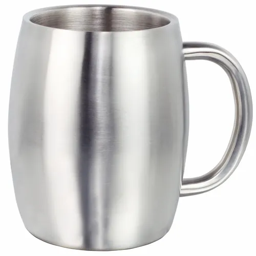 14 oz Stainless Steel Mug. Double Wall. Stainless Steel Handle. Perfect Beer or Coffee Mug