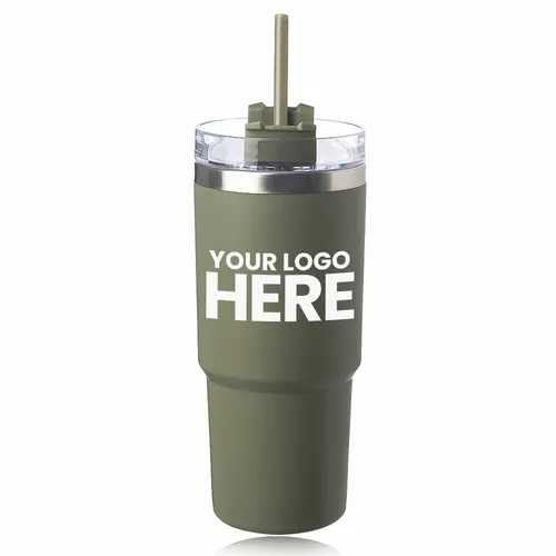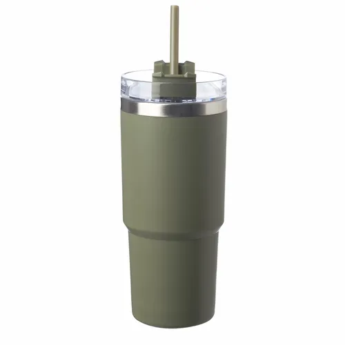 Plastic Outer Wall with Stainless Steel Interior. Lid with Closure and Straw Opening . Matte Finish . Includes Straw