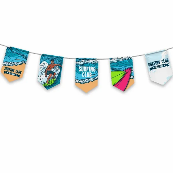 Ready to make a big impact? Our vibrant, customizable Pennant Strings are the perfect way to broadcast your team spirit, electrify events, or add a festive touch to any space. Choose from a range of string lengths and flag sizes to create a display that perfectly captures your message. Get ready to draw attention and spread excitement with these eye-catching pennant strings!