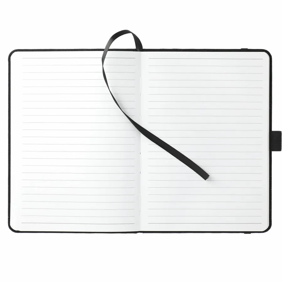 The 5 x 7 FSC Mix RPET Bound Notebook features a 600D RPET hard cover with color-matching elastic pen loop, closure and ribbon page marker. 80 sheets of white, FSC Mix lined paper. Through a partnership with 1% For The Planet, one percent of sales of all EcoSmart products are donated to environmental nonprofits.