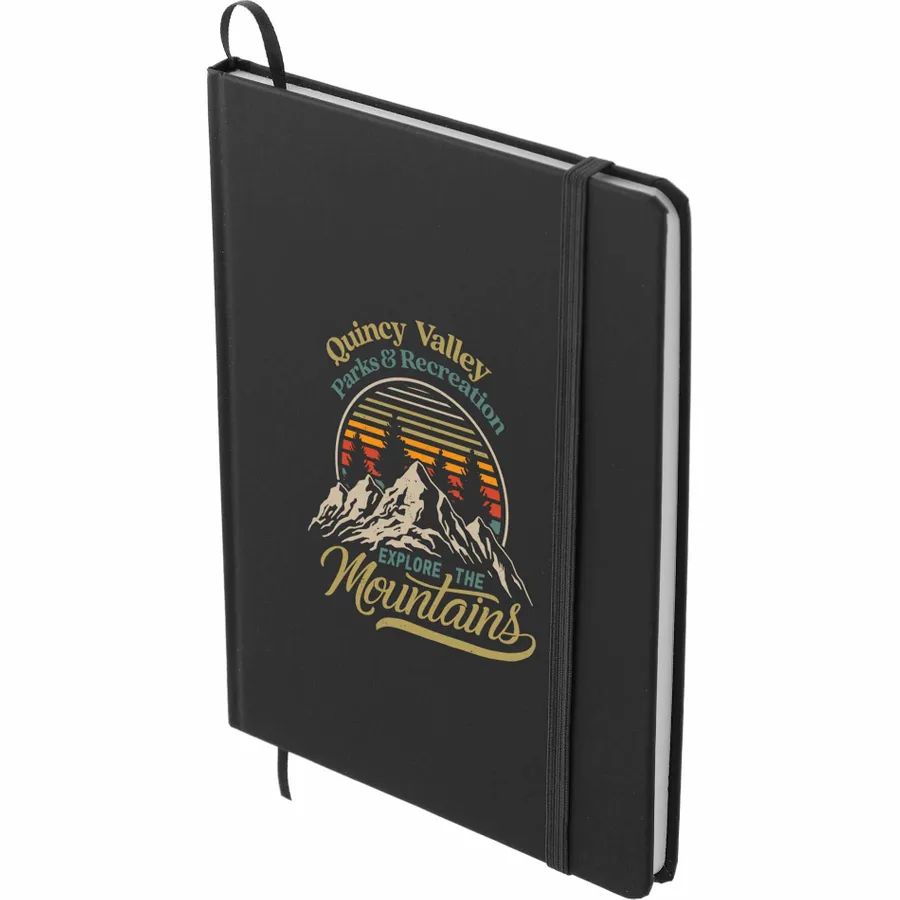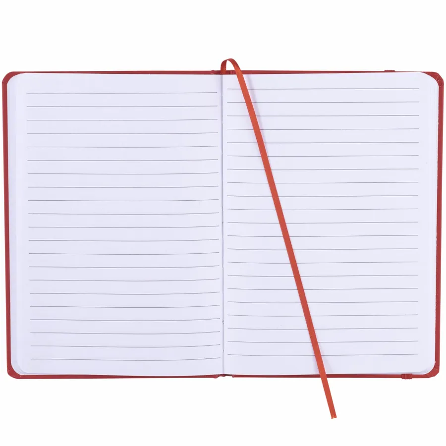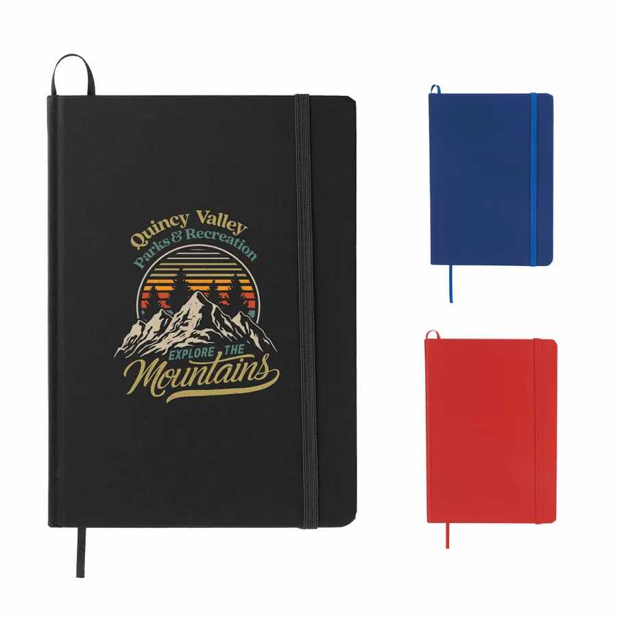 The Bullet 5 x 7 FSC Mix Snap Elastic Closure Notebook is an attractive, UltraHyde notebook that includes a matching color ribbon bookmark. It contains 80 ruled pages of FSC Mix paper.
