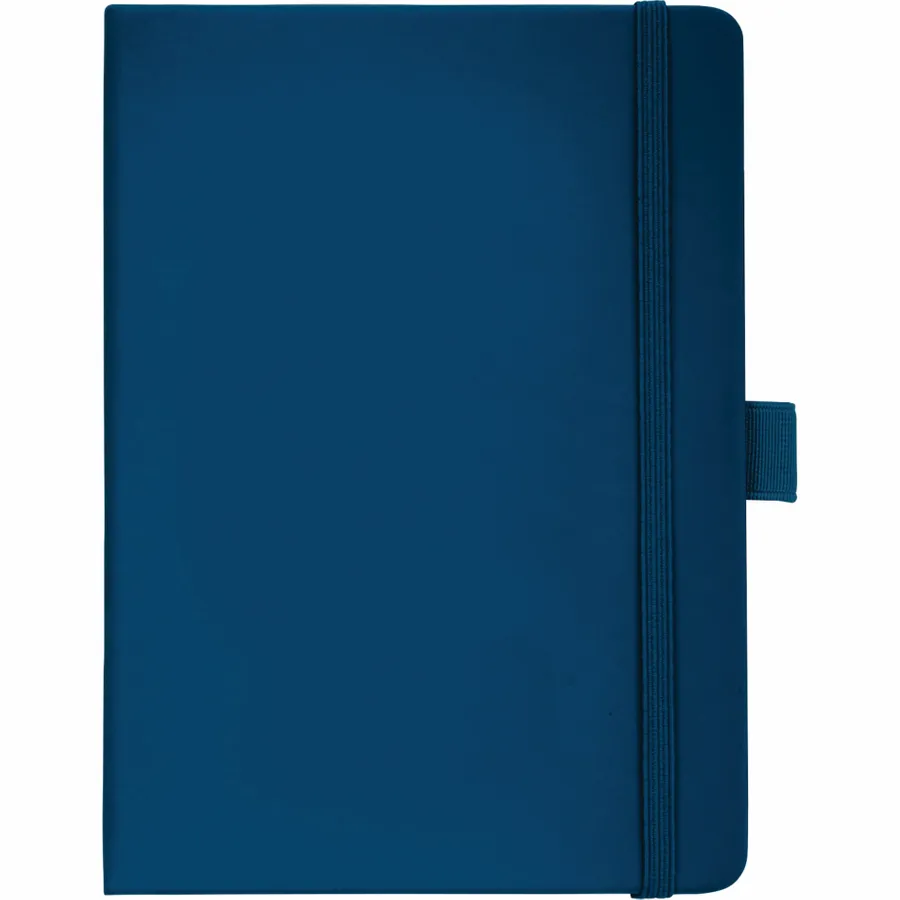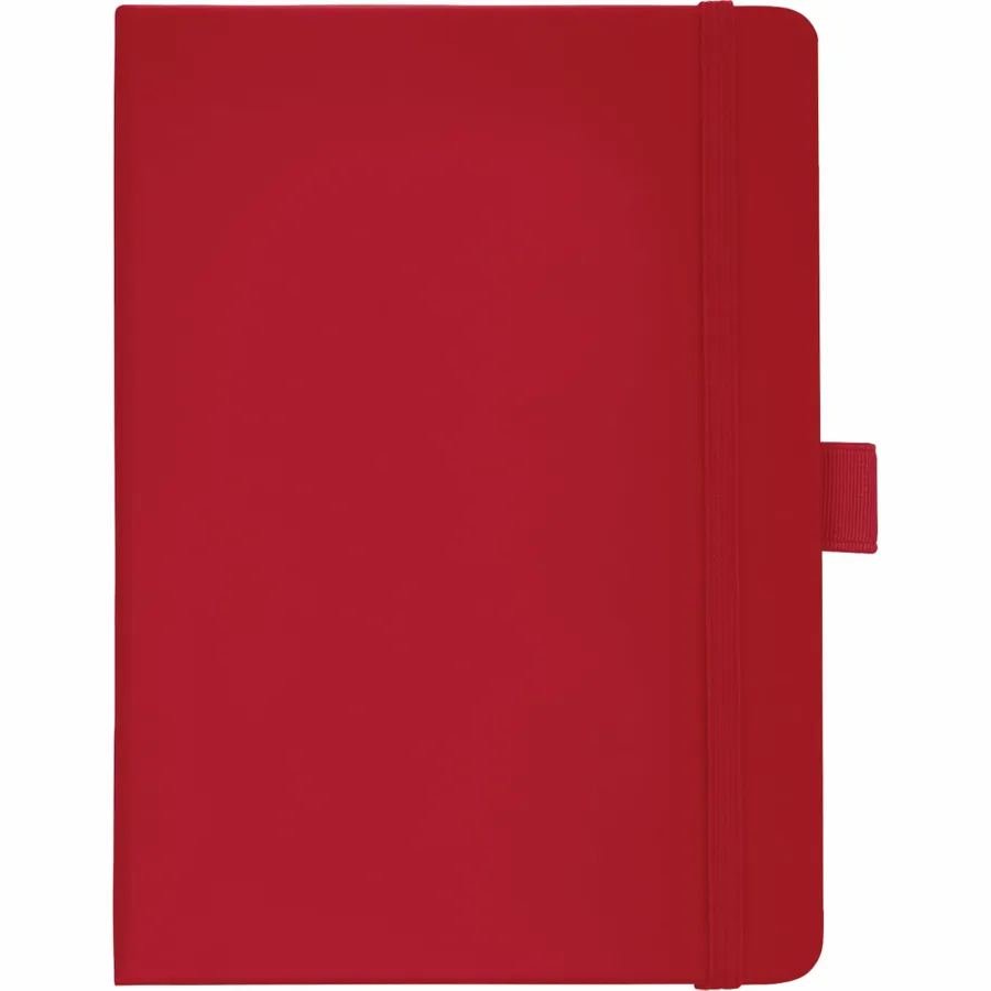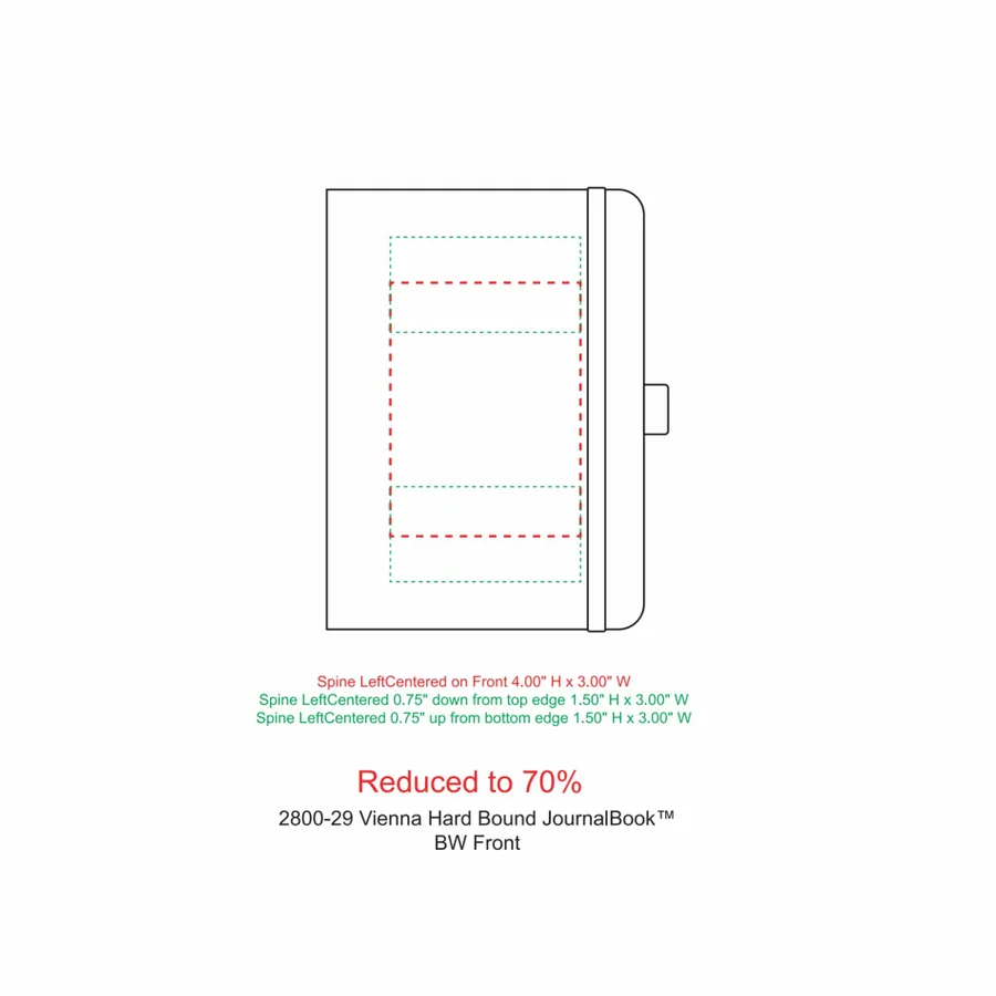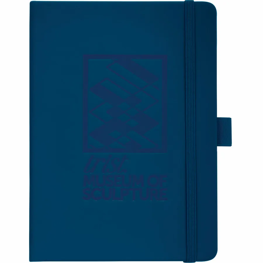 The 5 x 7 FSC Mix Vienna Hard Bound Journal is a soft touch, hard cover bound journal with built-in elastic closure. This custom notebook features a color-matching elastic pen loop and ribbon page marker. The 5 x 7 FSC Mix Vienna Hard Bound Journal includes 72 sheets of FSC Mix white lined paper.