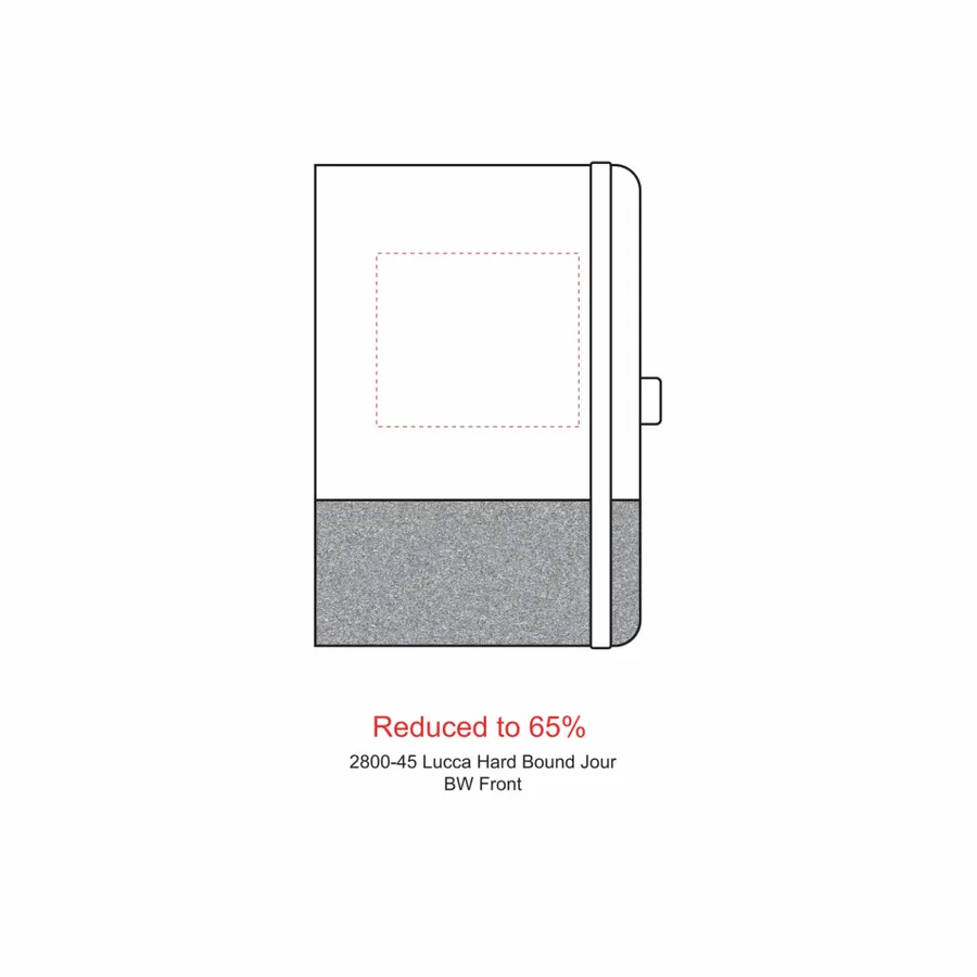 The 5.5 x 8.5 FSC Mix Lucca Cork Hard Bound Journal features a smooth polyurethane hard cover and cork-like bottom. This specialty Journal includes color matching elastic pen loop, elastic closure, and ribbon page marker. Includes 80 sheets of cream lined FSC Mix paper. Pen is not included.