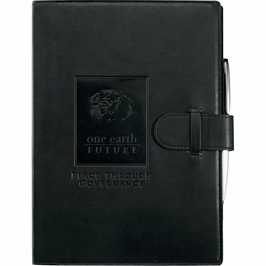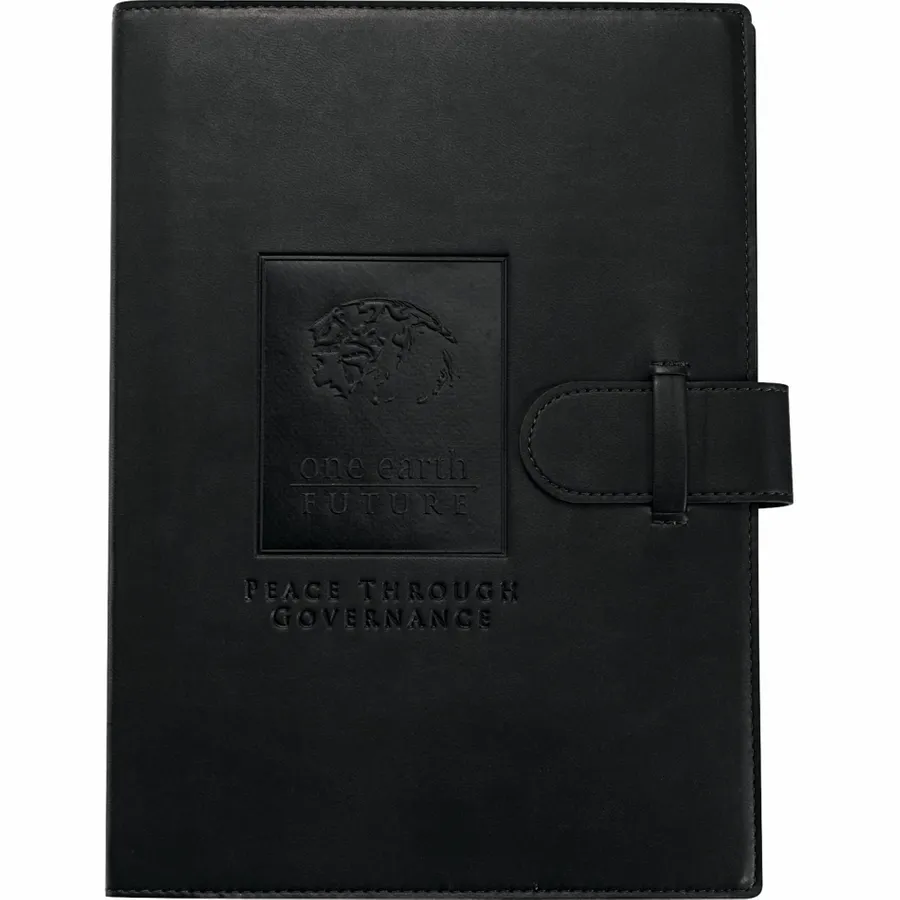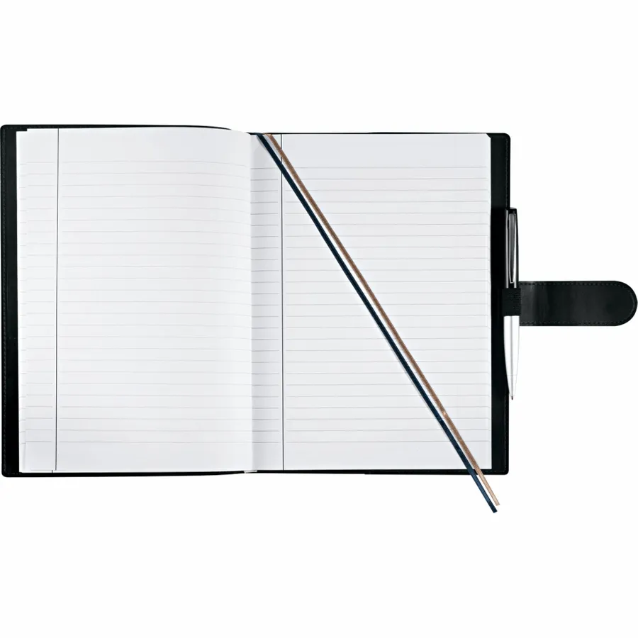 The 7 x 10 FSC Mix Dovana™ Large Journal contains 128 sheets of lined FSC Mix Journals refill paper. It includes an elastic pen loop, a dedicated slot for your business card, and ribbon page markers to hold your place. The Dovana™ cover is constructed from luxurious Italian UltraHyde and features a tab-and-loop closure to keep the notebook shut between uses. Pen not included.