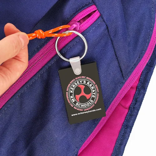 Our luggage tag keychains can be customized and are made of 2.16" x 1.38" soft plastic and a 2cm diameter metal ring. Reasonable size for easy carrying, is light and handy and has good tags for your stuff so you can easily find it. It's convenient and practical, suit for a home, office, keychain, a bunch of keys, pet ID tag, luggage tag, rental management company, storage facility, and more.