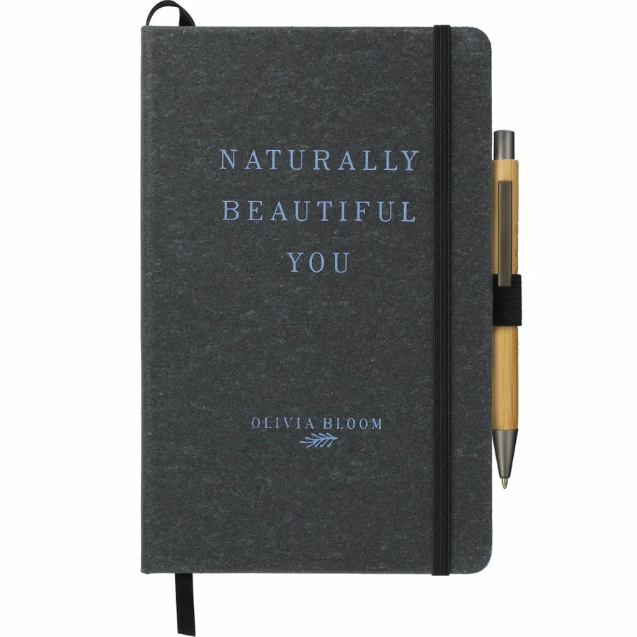 The 5.5 x 8.5 FSC Mix Recycled Leather Bound Journal features a recycled leather hard cover and 80 sheets of lined FSC Mix paper. This stylish, eco-friendly Journal features color-matching elastic closure, pen loop, and ribbon page marker. The Recycled Leather Bound Journal includes a back document pocket to store important notes. Through a partnership with 1% For The Planet, one percent of sales of this and all EcoSmart products will be donated to nonprofits dedicated to protecting the planet.