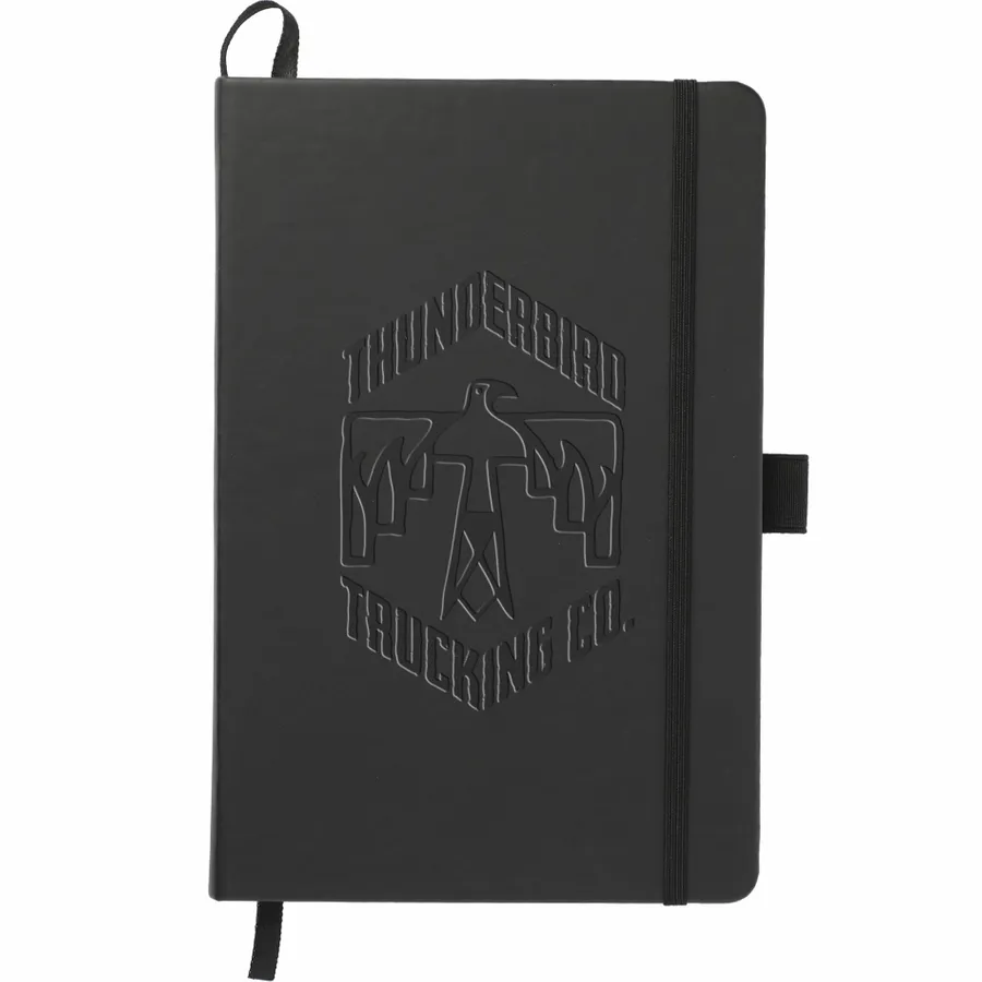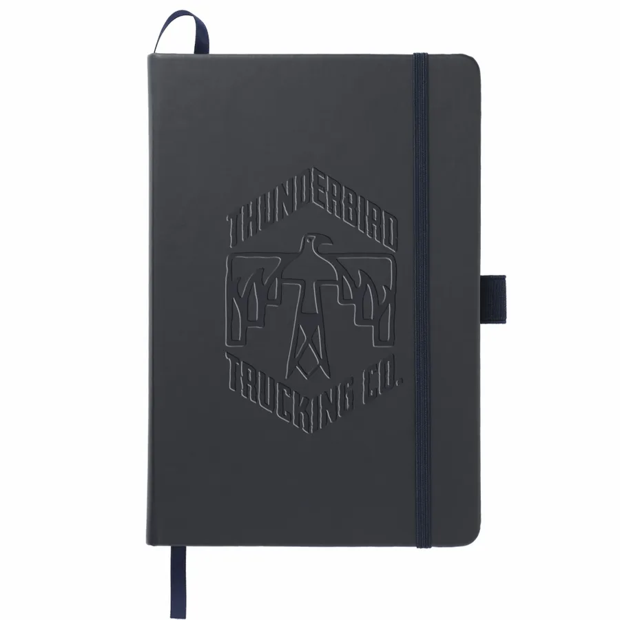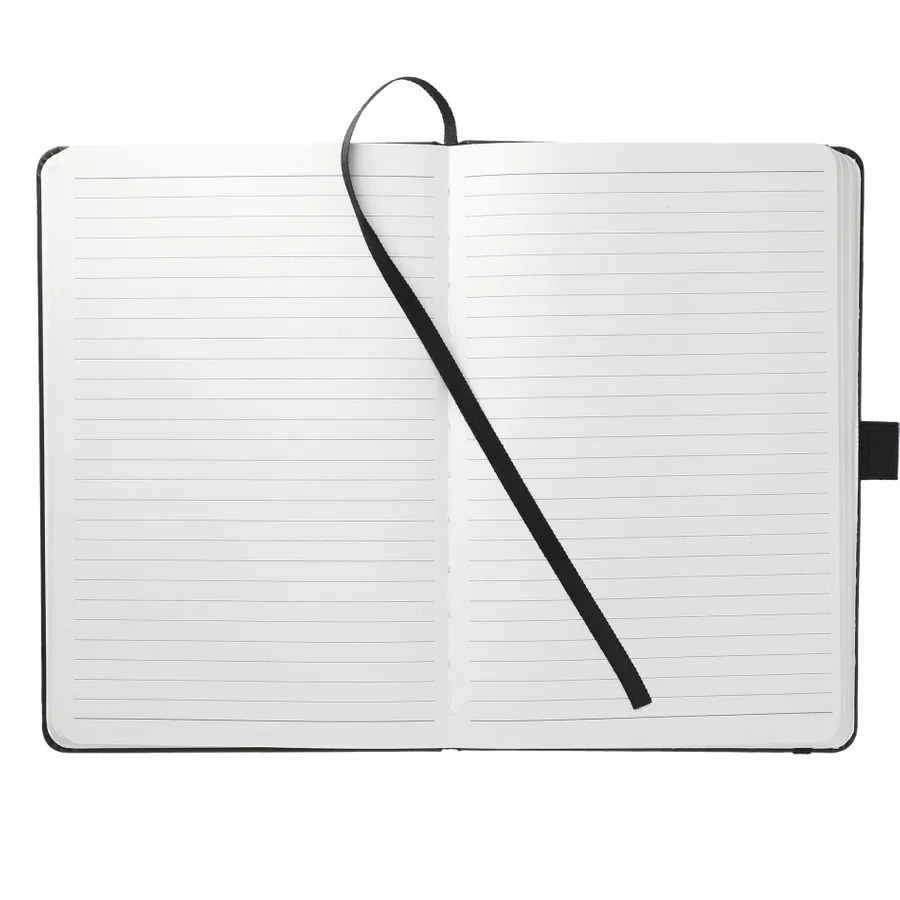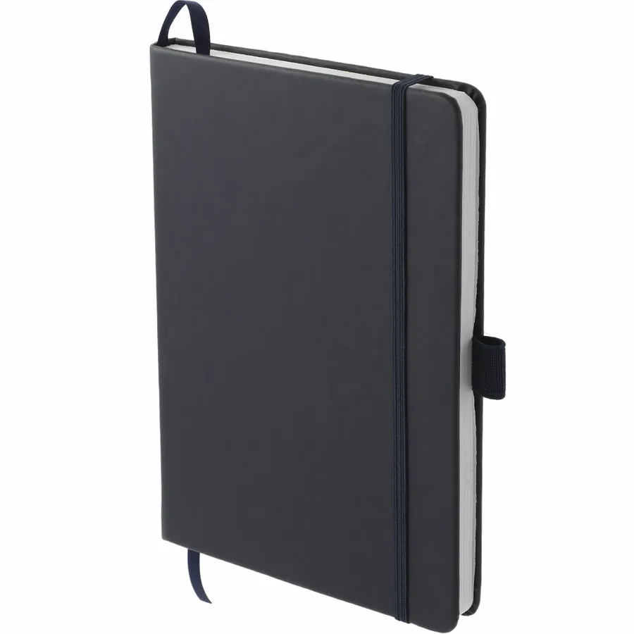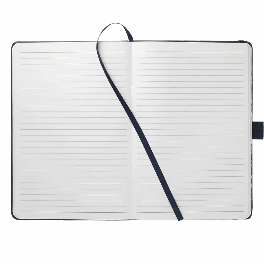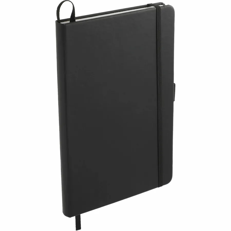 The 5.5” x 8.5” FSC Mix Mela Bound Journal features a uniquely crafted hard cover with 39% of apple components. Color-matching elastic closure, pen loop and ribbon page marker. Includes 80 sheets of FSC Mix white lined recycled paper and back document pocket. Through a partnership with 1% For The Planet, one percent of sales of all EcoSmart products will be donated to environmental nonprofits.