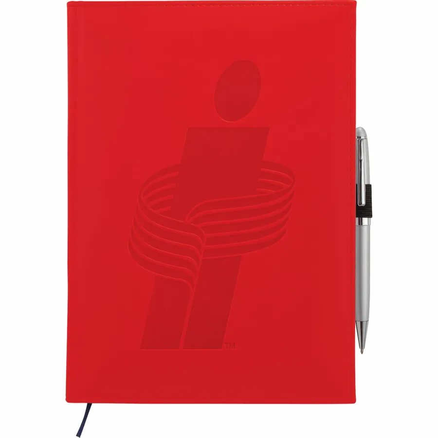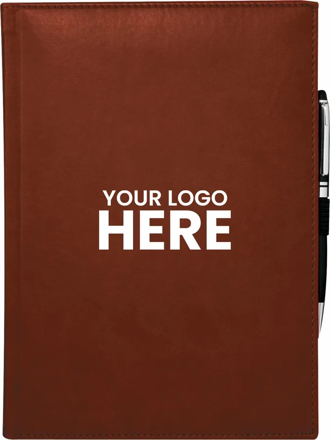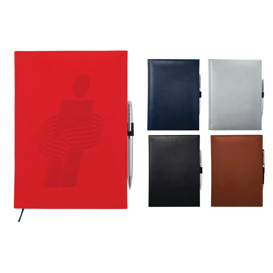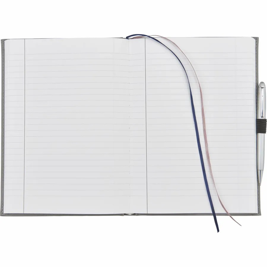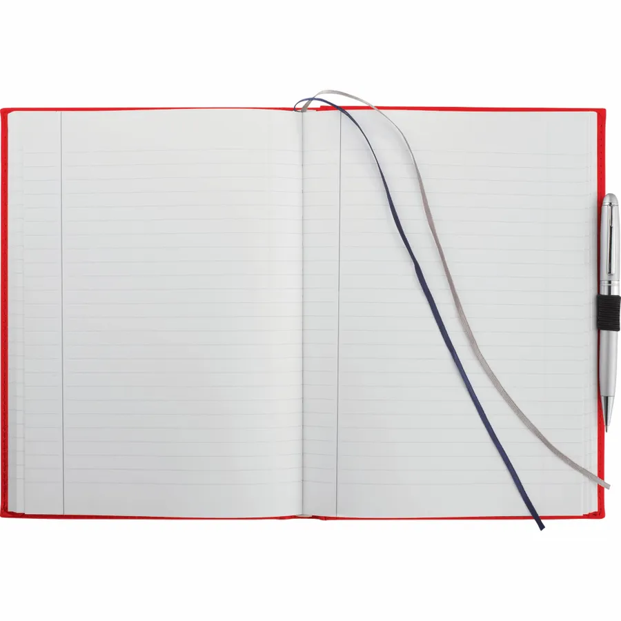 The 7 x 10 FSC Mix Pedova™ Large Bound Journal is a hardcover bound journal featuring Italian UltraHyde construction. It contains 125 sheets of FSC Mix white lined paper with built-in ribbon page markers to help hold your place between uses. This stylish notebook also features an elastic pen loop, with pens available to order separately.
