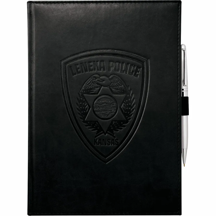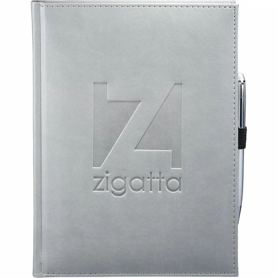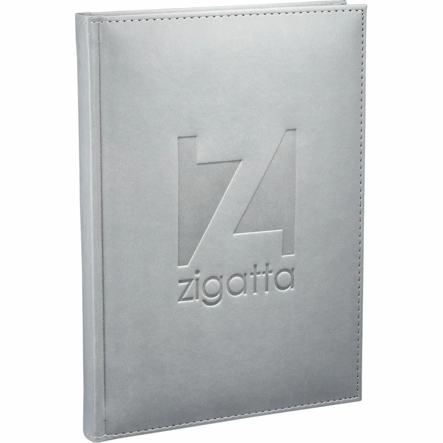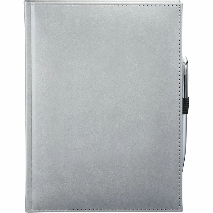 The 7 x 10 FSC Mix Pedova™ Large Bound Journal is a hardcover bound journal featuring Italian UltraHyde construction. It contains 125 sheets of FSC Mix white lined paper with built-in ribbon page markers to help hold your place between uses. This stylish notebook also features an elastic pen loop, with pens available to order separately.