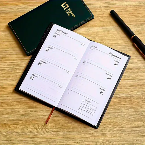 • A compact and stylish planner with a durable PU leather cover, perfect for on-the-go organization and note-taking.