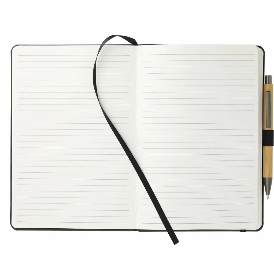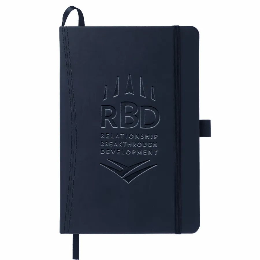 The 5.75 x 8.5 FSC Mix Pedova™ Pocket Bound Journal features a stitched hard cover, elastic pen loop, and built-in elastic closure. Includes a corresponding cover color ribbon page marker and expandable accordion pocket. Includes 80 sheets of FSC Mix white lined paper. Pen is not included.
