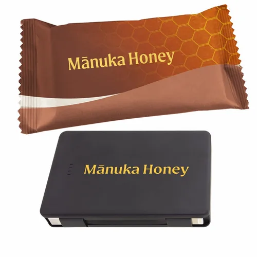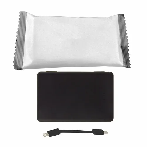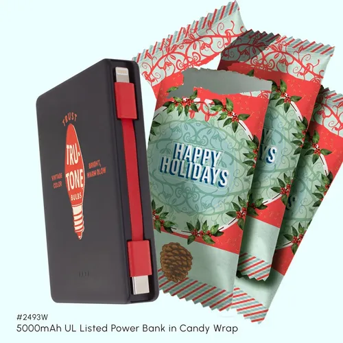 Keep business teams powered up with this officially UL-listed 5,000 mAh power bank in a candy wrapper that comes with a built-in storage section for a short Type-C to Lightning cable. The attached cable works with Android and Apple phones, PLUS, recharges the power bank. Having a cable always nearby will help keep teams efficient while speeding through a productive day. The innovative ONE CABLE™ solution charges old iPhones (14 and earlier models), new iPhones (15 and newer with a Type-C port)