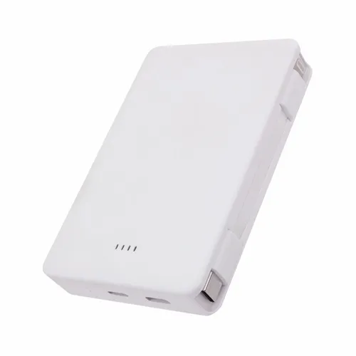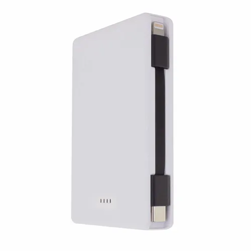 Keep business teams powered up with this officially UL-listed 5,000 mAh power bank that comes with a built-in storage section for a short Type-C to Lightning cable. The attached cable works with Android and Apple phones, PLUS, recharges the power bank. Having a cable always nearby will help keep teams efficient while speeding through a productive day.The innovative ONE CABLE™ solution charges old iPhones (14 and earlier models), new iPhones (15 and newer with a Type-C port), and all Android pho