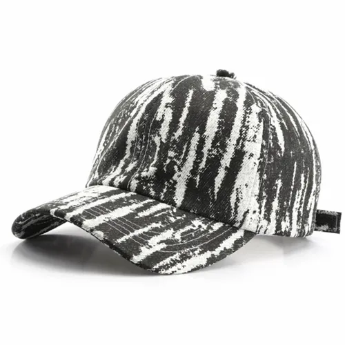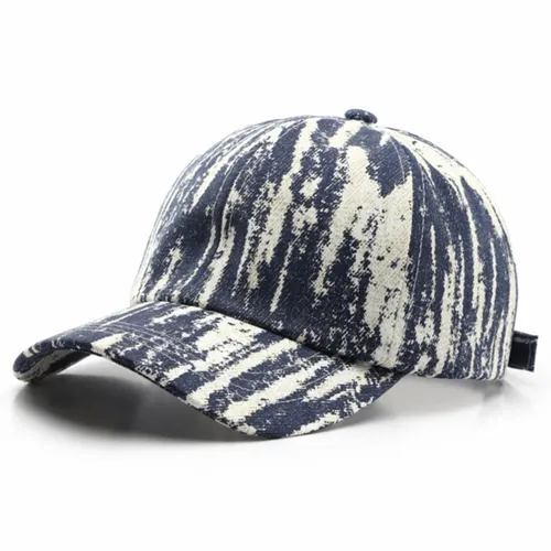 This is a type of hat that is made of cotton material and features a marble-like pattern. In the case of a Marble Style Cotton Cap, the cap is designed to resemble the distinctive pattern of marble, often using a combination of different colors to create a dynamic and eye-catching design. The cap is designed to be adjustable to fit different head sizes, often with a fabric strap and a metal buckle.