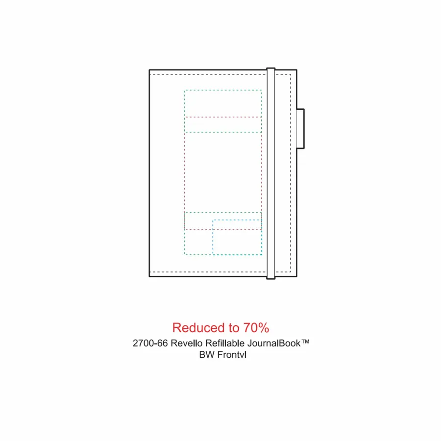 The 5.25 x 7.5 FSC Mix Revello Refillable Journal features a flexible soft cover and built-in elastic closure. This refillable Journal includes 60 sheets of cream lined FSC Mix paper, business card slot, and pen loop. Get 5 x 7 paper refills for this Revello Refillable Journal from leedsworldrefill, 9091-97RF. Pen not included.
