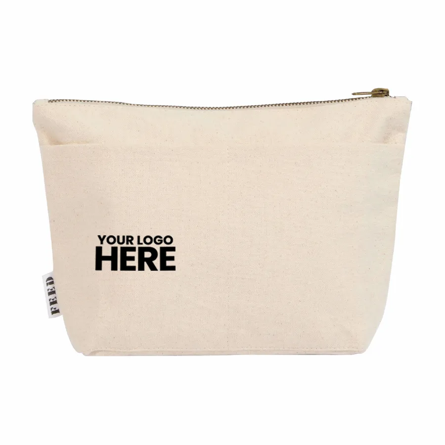 The FEED Organic Cotton Pouch combines style and purpose, making a meaningful impact with every purchase by helping provide 3 school meals to children worldwide. Crafted from durable 12oz. 100% GOTS Certified Organic cotton, this pouch features a secure metal zippered main compartment, two exterior back pockets for quick access, and a screen-printed FEED giveback message inside. Designed for versatility, it stands upright on its own, making it an ideal choice for organizing your daily essentials.