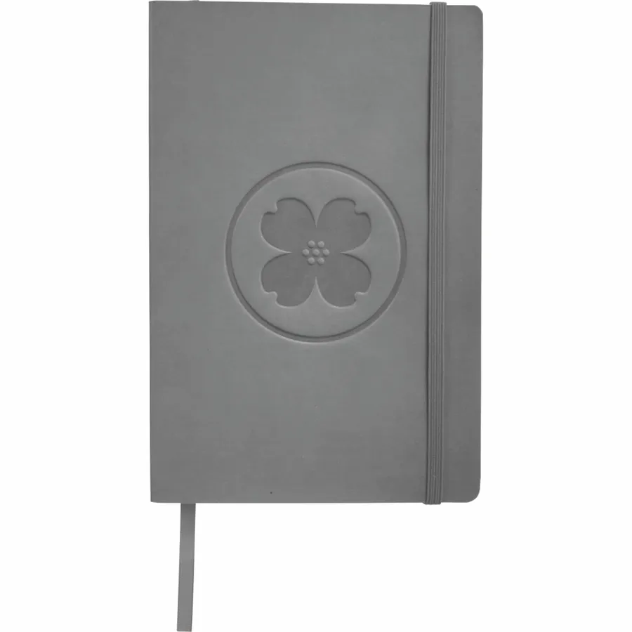 The 8 x 5.5 FSC Mix Pedova™ Soft Bound Journal features a flexible cover made from luxurious Italian UltraHyde materials. It closes using a built-in elastic band and opens to reveal 80 sheets of FSC Mix lined paper, perfect for note-taking, list-making, jotting down ideas and more. This compact 8.0 H x 5.5 W notebook contains a convenient built-in page marker and features a document pocket inside its interior back cover.