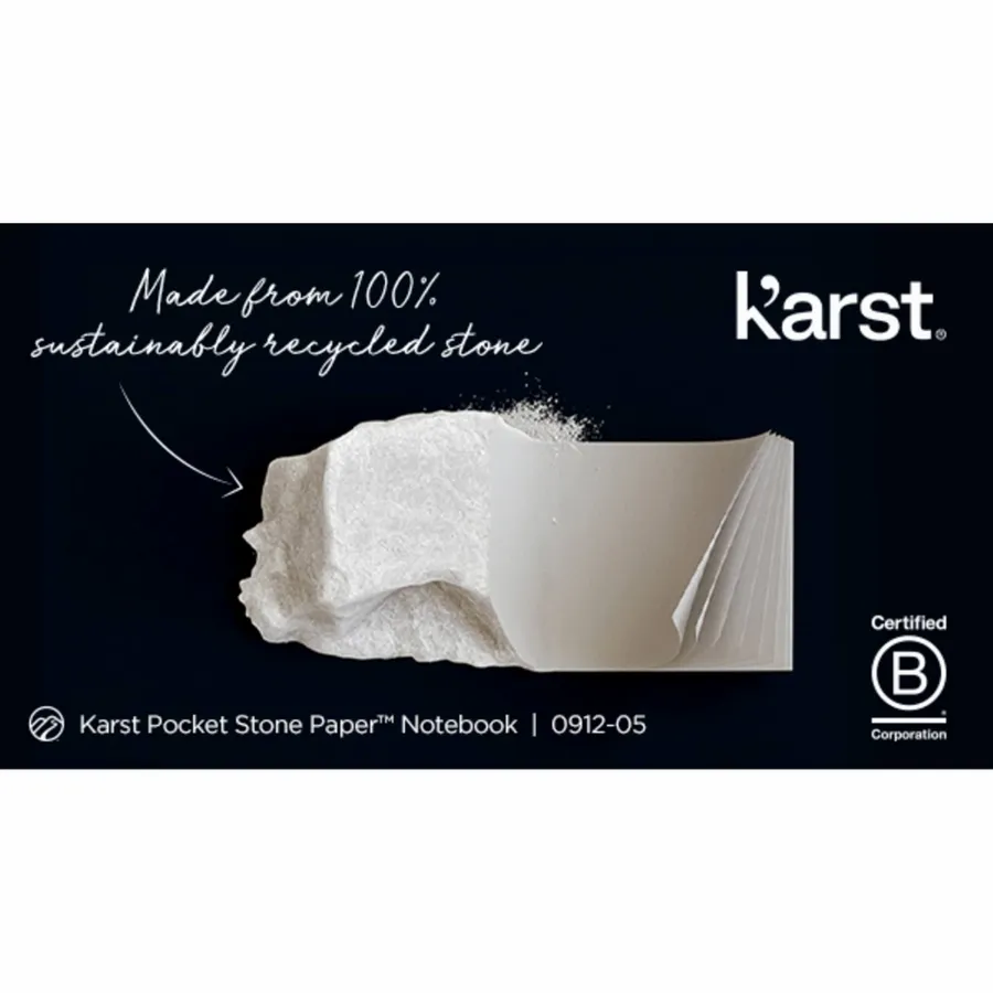 The Karst Pocket Stone Paper Notebook is perfectly sized to carry with you on the go. This notebook features 50 blank pages of recyclable stone paper which is waterproof, tear-resistant and allows for friction-free writing. Also includes a back pocket. Due to the nature of the material, there may be color variances on the cover.