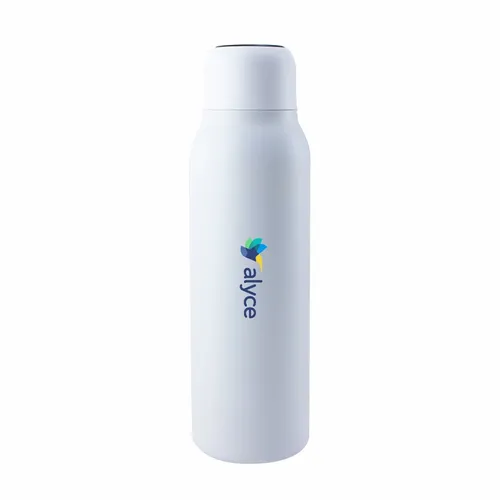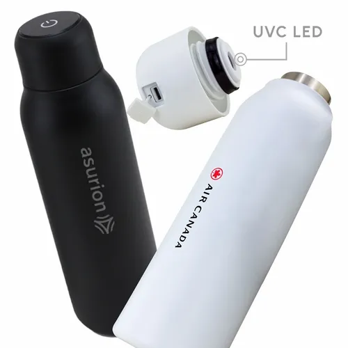 An insulated bottle that purifies your drink and interior surface with just a touch of a button. Using UV-C LED light disinfection technology eliminates 99.99% of harmful bacteria and odors. Made with food-grade 304-stainless steel, and double-wall insulation construction keeps your beverages cold for 24 hours or hot for 12 hours. Its convenient "self-cleaning mode" automatically operates every 6 hours when active and helps keep the bottle germ and odor-free. Large 20 oz. capacity.