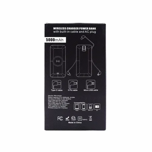 Simplify your Smart Simplify your Smart Phone charging experience with the Chi-Charge Plus. Have a wireless charging phone? Place it on the Chi-Charge Plus to power up! Still charging using wires? No problem! All major cables are built right in: 8-Pin Compatible, micro USB, and Type-C. When time to recharge the Chi-Charge Plus, simply plug it directly into your wall via the integrated AC Plug. With the Chi-Charge Plus 5000 mAh Power Bank, it will be easier than ever to stay charged.