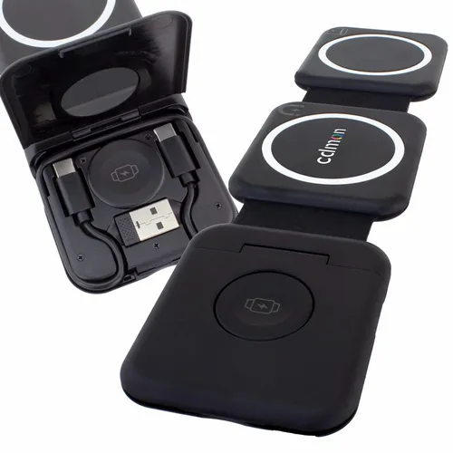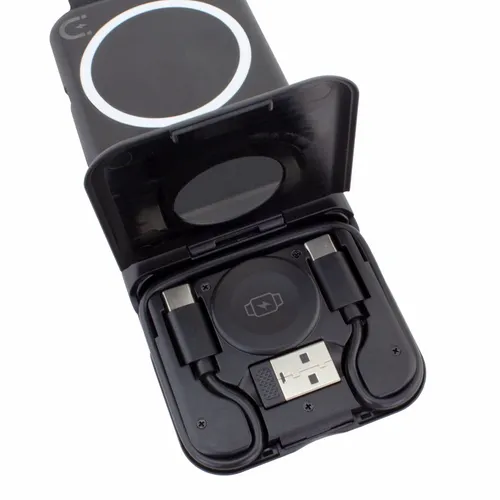 This is the perfect travel kit for busy teams that travel a lot for business and need to keep multiple devices charged and ready to go. It comes with our new Chi-Charge Snap(#2285) that wirelessly charges a phone, Apple Watch, and AirPods. It features a compartment that conveniently stores a USBC-to-USBC cable and a Type-C-to-USB adapter. Additionally, the kit comes with our new slim and convenient USB-C and USB-A AC adapter(#2181). It all comes neatly packaged in a stylish portable zipper case.
