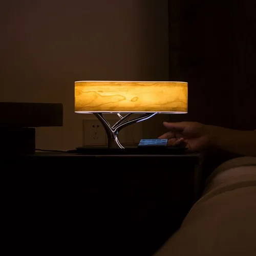 It's a wireless charger and speaker that is not only useful but elegant as well. It's a modern design with a natural wood lampshade inspired by the bonsai tree. Simply press the button on the top of the lamp to start listening to your favorite music. Play motivational music throughout your busy work day or switch over to the Good Night Mood mode light and listen to some relaxing sounds at the end of a busy day. Light up any office or home with this beautiful item.