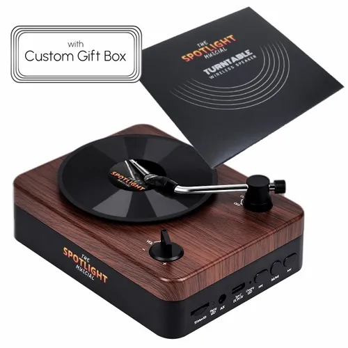 Turntable Wireless Speaker with Custom Record Envelope and Custom Gift Boxs