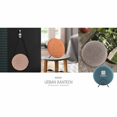 The Urban Kanteen is designed with a clean, crisp, powerful sound combined color options that blend well with any home or office decor. The leather strap and stand attachments allow this wireless speaker to be the perfect wall or table accent where your client's message will always have a display. Available with full-color digital printing.